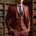 Elegant Men’s Suits Classic Rust 3-Piece Suit Modern Groom and Wedding Attire Perfect for Events & Dinners (Jacket+Vest+Pants)